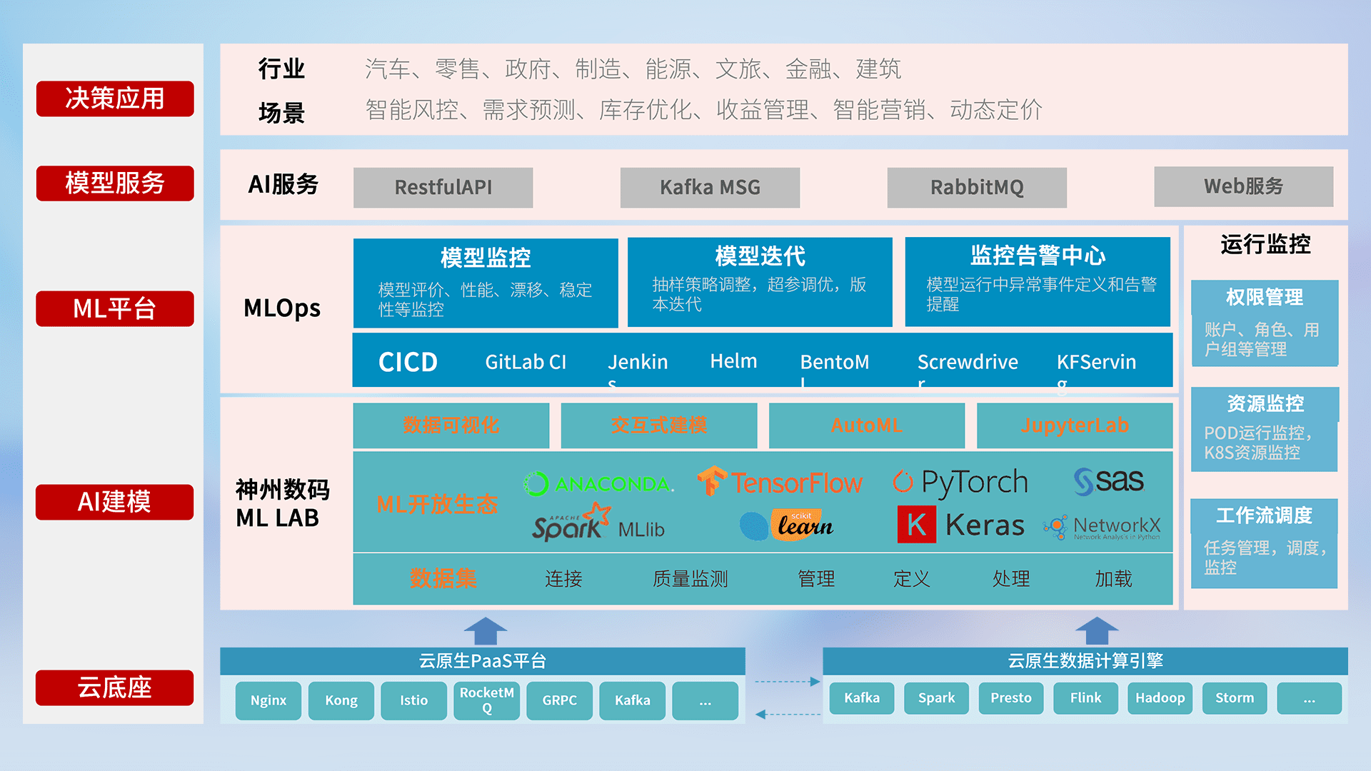 数据+模型双引擎驱动,,面向智能服务场景,,,,快速灵活利用AI技术,,,,支持业务决策,,,助力企业智能化转型破局。。。